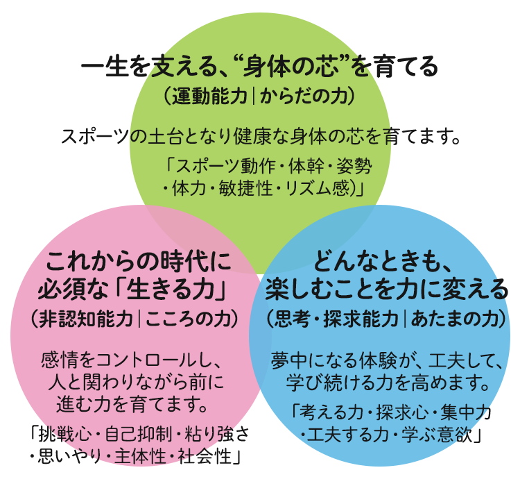 思いっきり体を動かし、仲間と意見を交わし、心の底から笑い合う!チャレンジを楽しんで、いっぱい失敗して、たくさん褒められて、一歩一歩大きくなる!